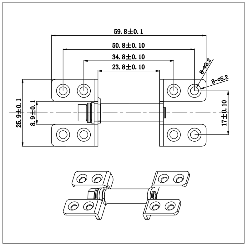 过线台灯转轴,中轴空心可以做线,并且在过线孔两侧有R角,保护线槽,转轴自带限位功能。