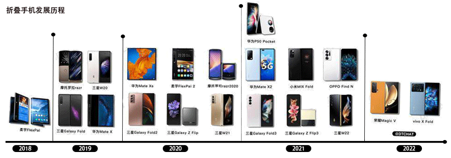 1974年-2018年,从一项深居实验室的”Gyricon”柔性电子纸显示屏技术-柔宇FlexPai全球首发,打开了手机的新形式-折叠屏。再到折叠屏手机神仙打架的2021年。三星用UTG取代CP,多角度自由旋转铰链技术,装甲铝材料创造了更耐用的机身,创造了折叠屏幕手机新的水平;华为MateX2采用了新的内部折叠设计,成为了高端折叠屏幕手机的天花板;OPPOFindN将折叠屏幕手机从新的数字技术玩具演变为具有实际使用价值的折叠屏幕手机,可用于日常生活。即使是用户评论褒贬不一的小米MIXFold,也标志着MIUI版折叠手机的起点,具有积极意义。2022年1月10日晚,荣耀发布了第一款折叠屏幕产品Magicv,华为、vivo、小米折叠屏幕手机也将发布旗下新款折叠屏手机。
