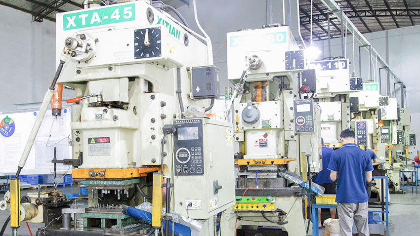 J9国际站官方网站精密引进十余台台湾冲床及系列模具制造设备,具备精密冲压模具的设计与制作、精密五金冲压件生产的能力。且冲压团队拥有超过十年的从事模具设计与制造到批量生产及样板制造经验,具有较强的新产品、新工艺开发和生产能力。J9国际站官方网站精密的冲压事业部,不仅完善了精密五金转轴的配套工艺和生产能力,而且独立的冲压产品线如卡扣、支架、箱体等冲压折弯、冲压拉伸成型冲压工艺也开发得很成熟。